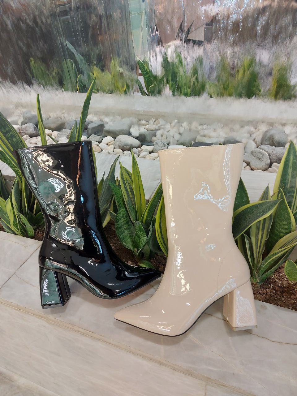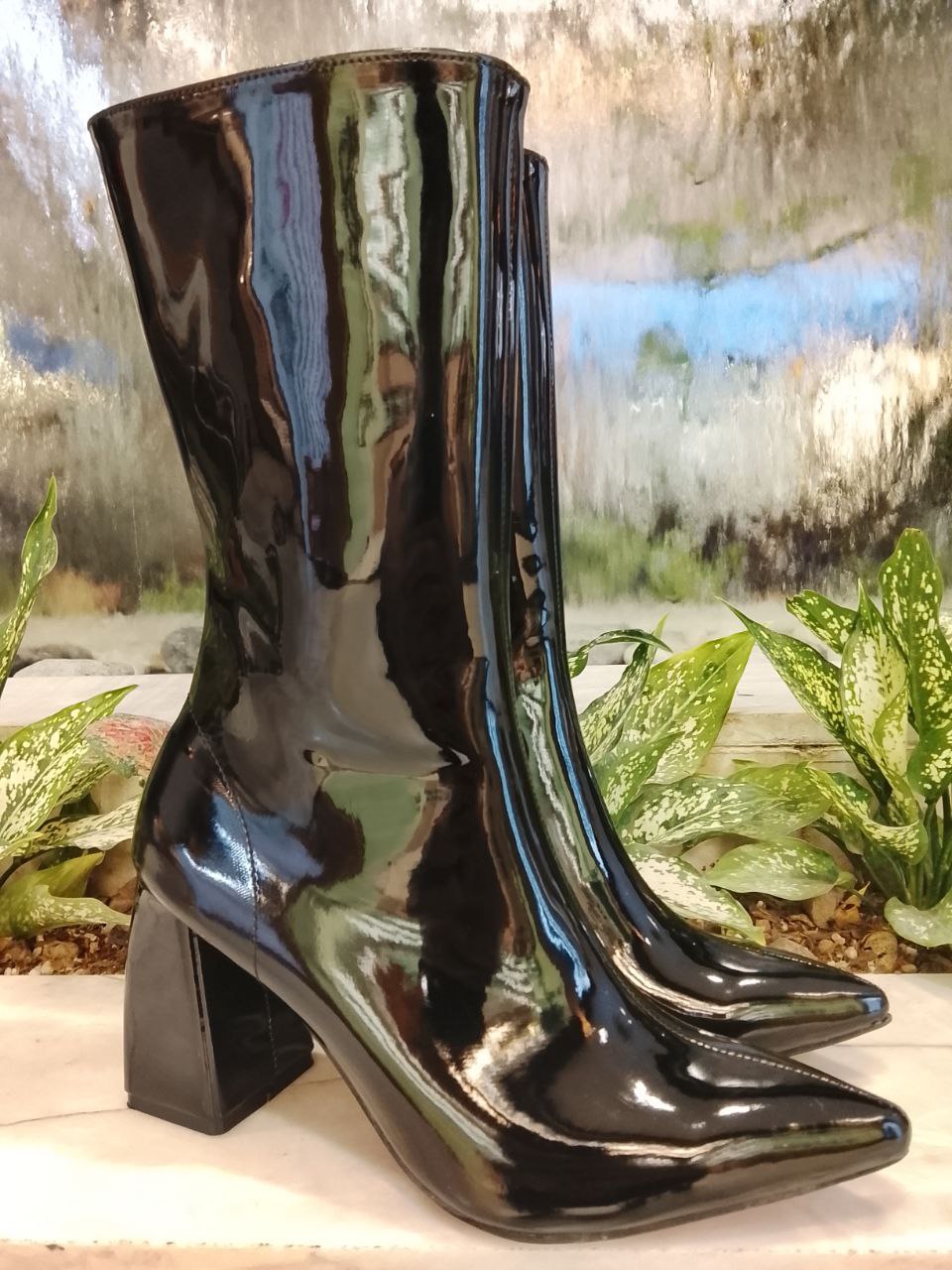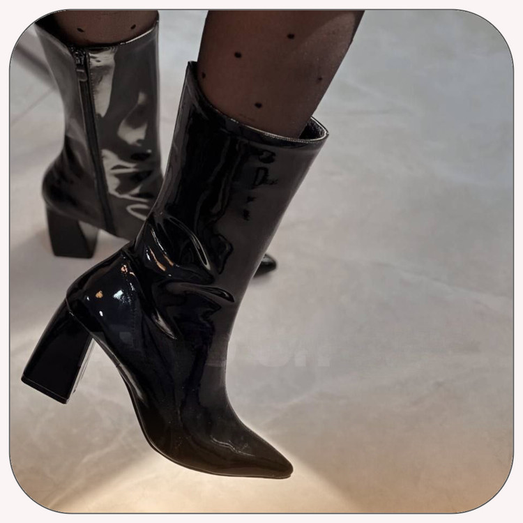 نیم بوت پاشنه دار ورنی زنانه